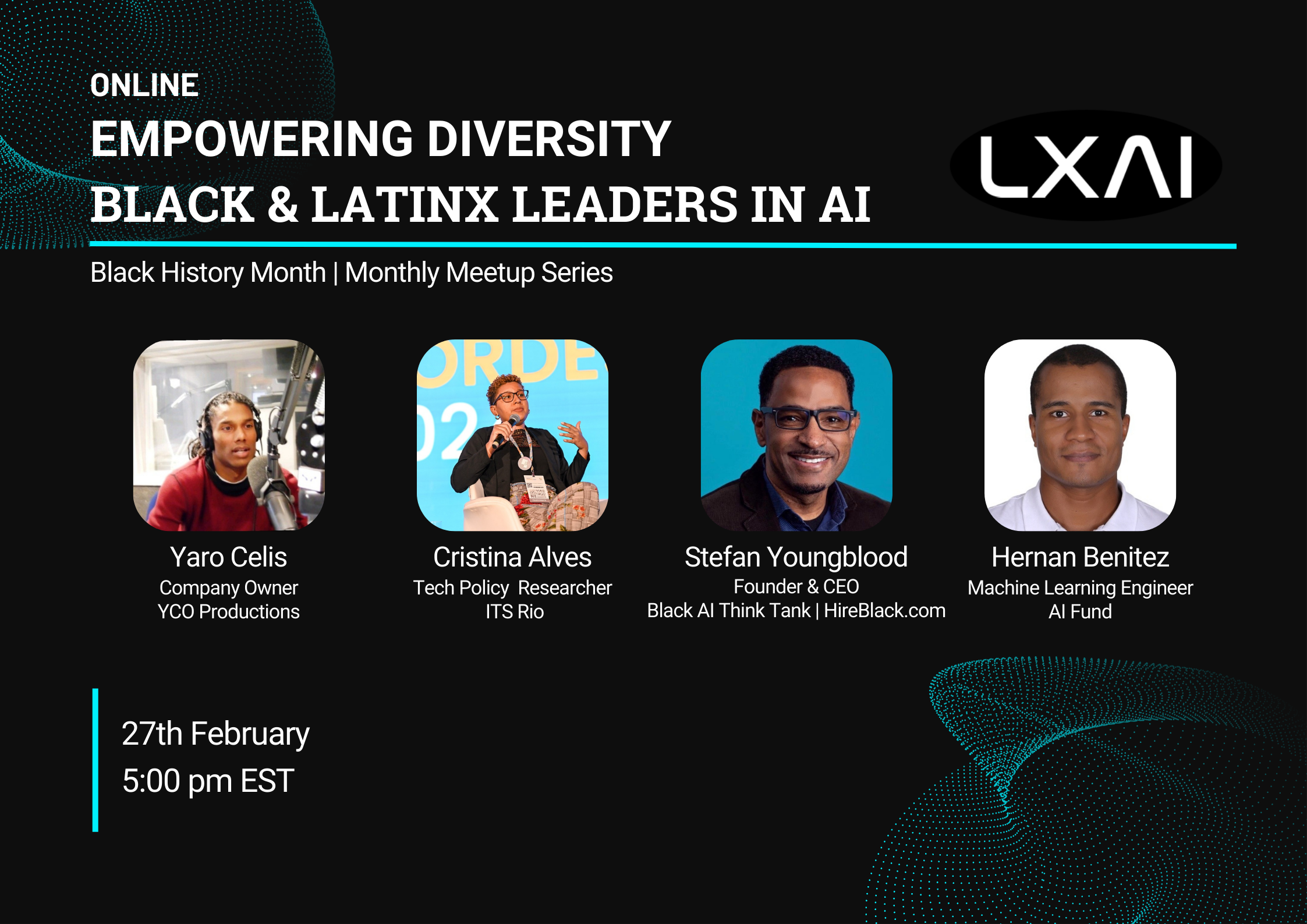 Join us for an engaging panel discussion in honor of Black History Month, where we will explore the impact of Artificial Intelligence (AI) and Machine Learning (ML) through the lens of diversity, equity, and inclusion. In conversation with leading AI experts and innovators, we will discuss the contributions of Black and LatinX professionals in the field, the challenges they face, and the opportunities to create a more inclusive AI ecosystem. This session will highlight the importance of representation, fairness in AI systems, and strategies for fostering diverse talent in the industry.